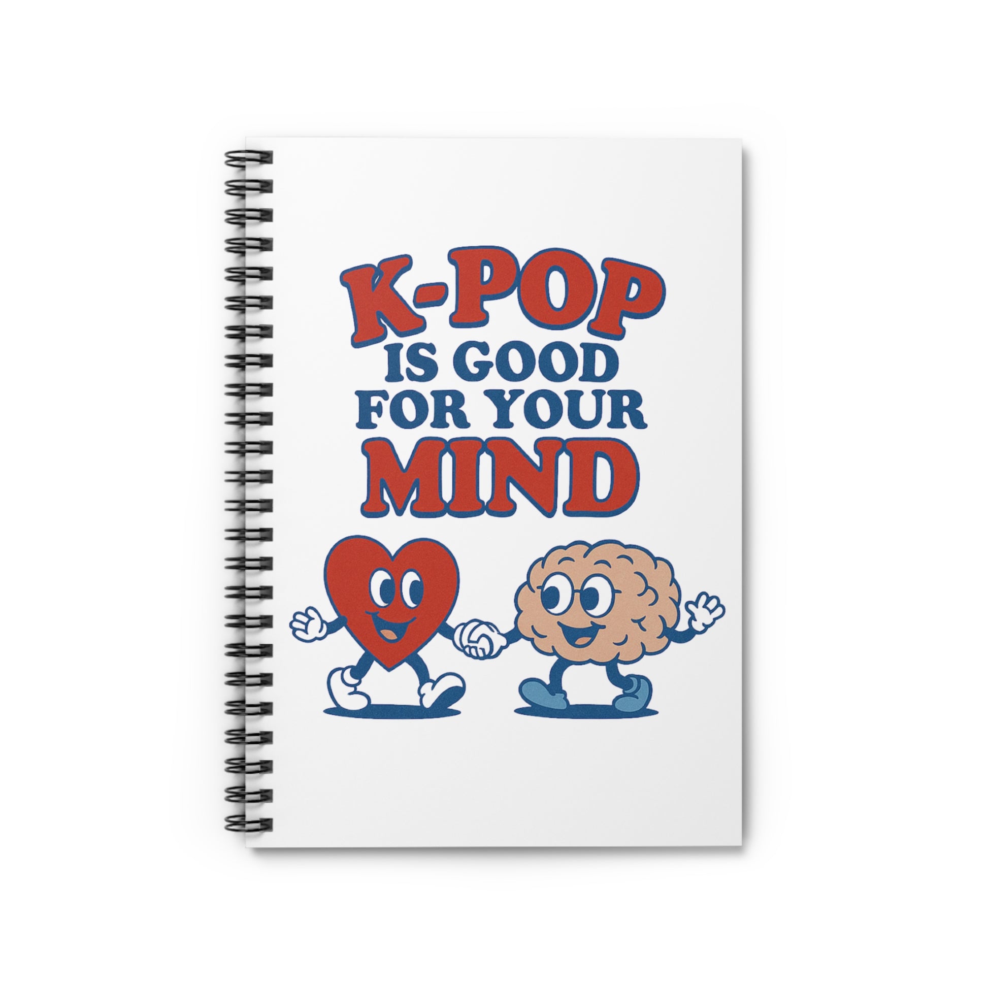 This “K-Pop Is Good For Your Mind” notebook is your new brain bestie—perfect for journaling, lyric writing, doodling your bias, or plotting your next concert trip. With the iconic heart and brain duo on the cover, it’s equal parts cute and cathartic.